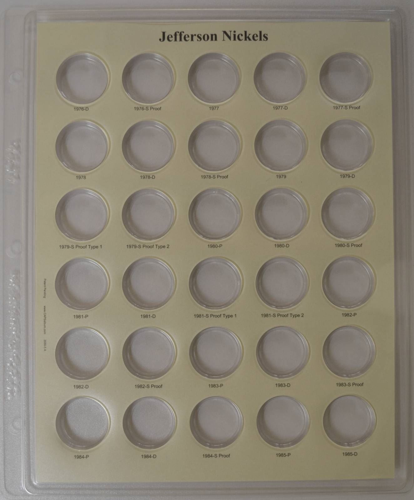This page has spaces for 30 A size capsules. The date range is 1976-D to 1985-D. Coins and capsules are not included.